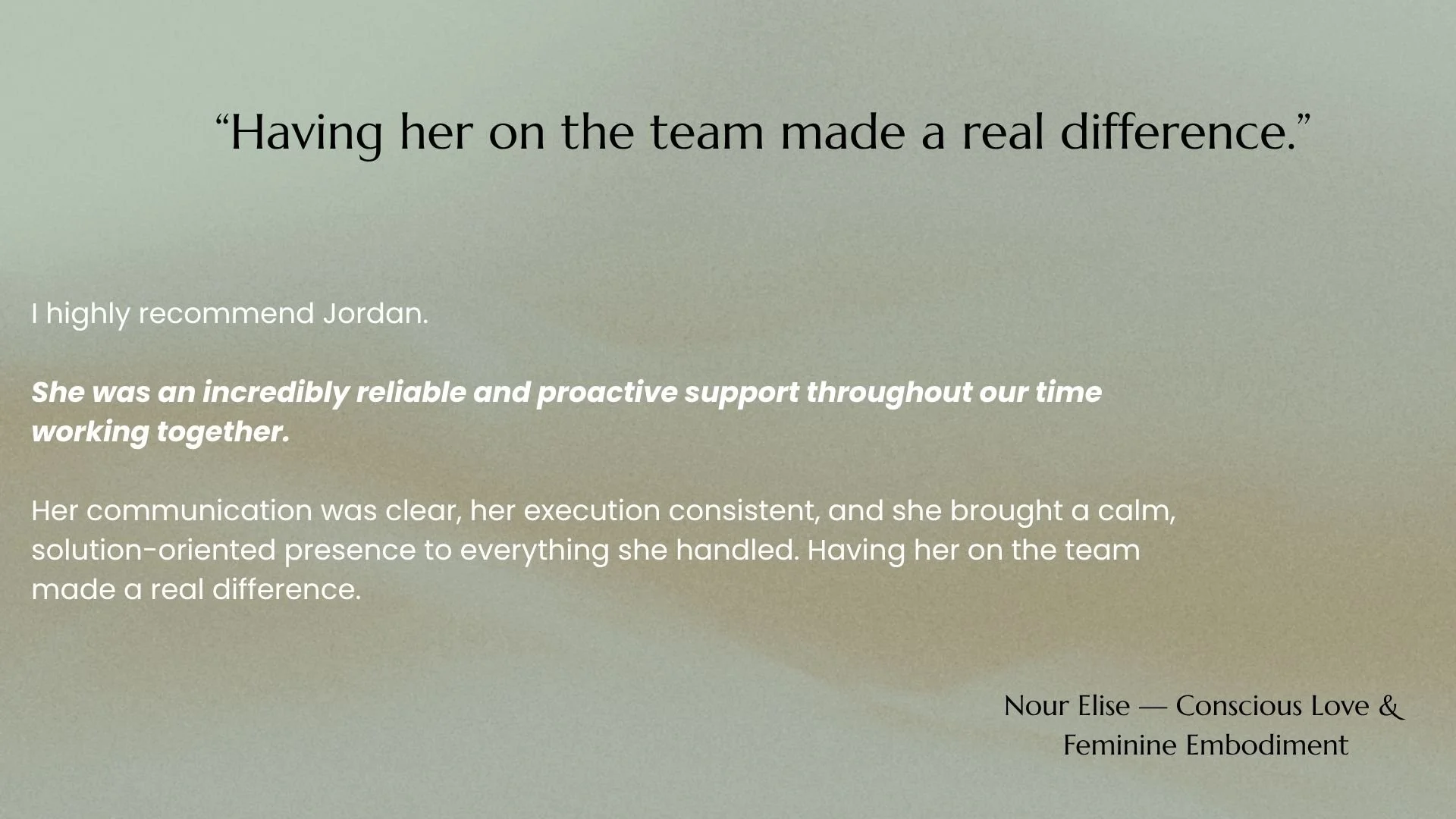 “I absolutely loved the time I had Jordan on my team as a virtual assistant.